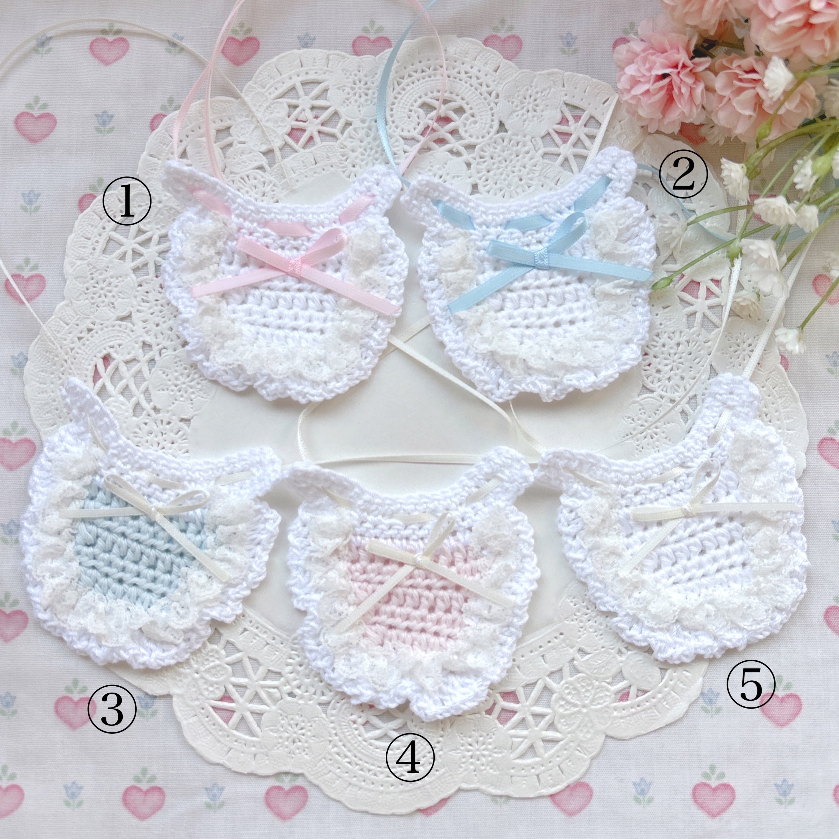 ぬいぐるみさん用の小さな手編みスタイ